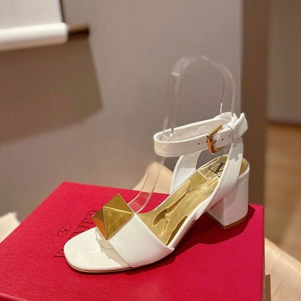 فالنتينو مسمار واحد مع الصنادل حزام الكاحل النساء جلد العجل الأبيض