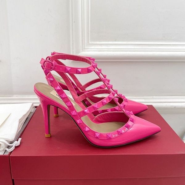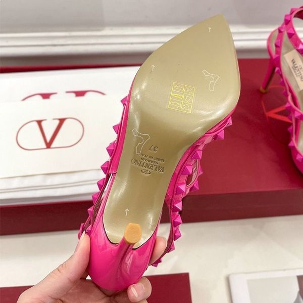 فالنتينو Rockstud حزام الكاحل مضخات المرأة براءات الاختراع والجلود وردي