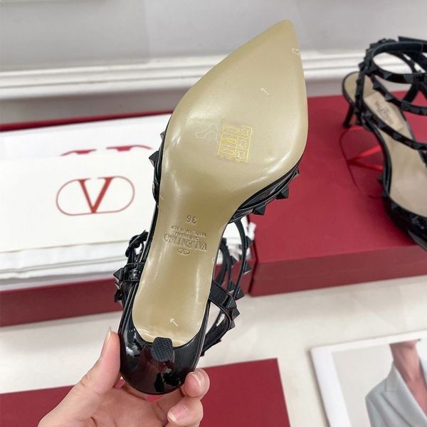 - فالنتينو Rockstud قفص مضخات المرأة براءات الاختراع والجلود السوداء
