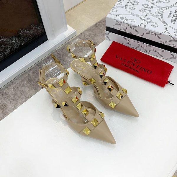 - فالنتينو الرومانية مسمار مضخات مع الأشرطة جلد العجل المرأة الكاكي
