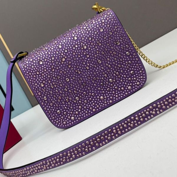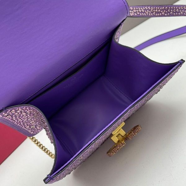 فالنتينو صغيرة Vsling حقيبة ستايجلايت مع بلورات تألق في جلد الغزال الأرجواني