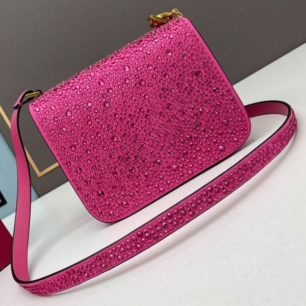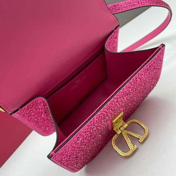 فالنتينو صغيرة Vsling حقيبة ستايجلايت مع بلورات تألق في الجلد المدبوغ روز