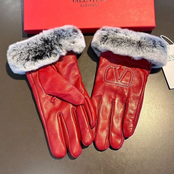 فالنتينو Vlogo تنقش قفازات المرأة الغنم مع الأرنب الفراء الأحمر