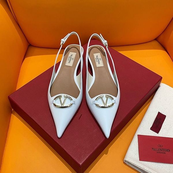 - فالنتينو Vlogo Slingback في الباليه المرأة جلد العجل الأبيض