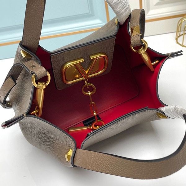 Valentino Malé VLogo Escape Tote V Zrnitá Teletina Káva-Káva Valentino VLogo Escape Tote.-Zrnitá Telecí Kůže.-Logo a kovové části povrch antické mosazi.-Dvojité rukojeti, odnímatelný a nastavitelný ramenní popruh.-Spona s kovovým logem.-Velikost: W31 * H25 * D15 cm.