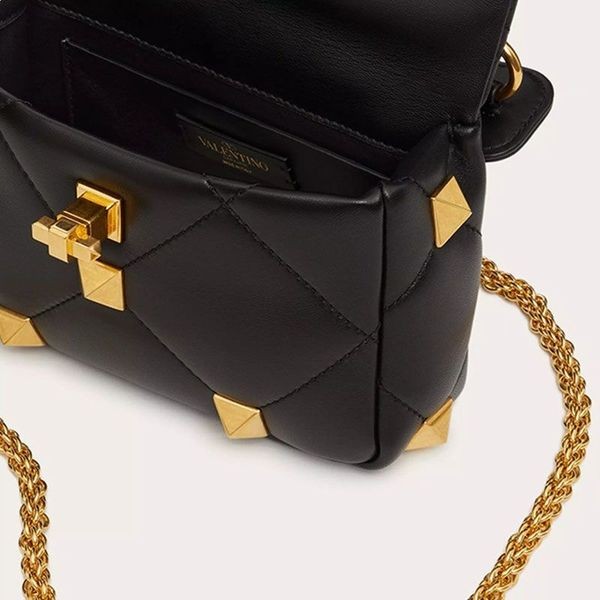 Valentino Malý Roman Stud Taška Přes Rameno V Nappa Kůže Černá/Zlatá