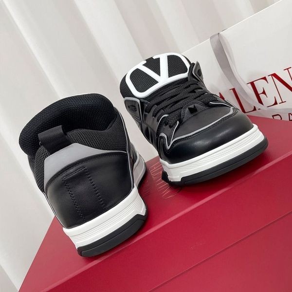 Valentino Otevřít Skate Tenisky S VLogo Unisex Telecí kůže a Látka Černá/Šedá