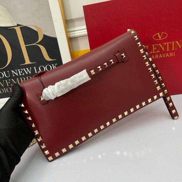 Valentino Velké Rockstud Náramkové Spojka s Řetězce V Telecí kůže Vínová-Burgundy Valentino Rockstud Náramkové Spojky.-Zrnité Telecí Kůže. -Zlato-dokonči knoflíky a hardware.-Magnetické přichycení uzavření.-Náramkové rukojeť, Odnímatelné Řetězce popruh.-Interiér: prostoru, kapsa na zip.-Velikost: W28 * H16 * D8 cm.
