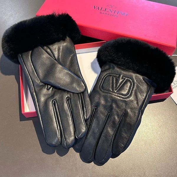 Valentino Vlogo Reliéfní Rukavice Ženy Ovčí Kůže S Králičí Kožešiny Černá