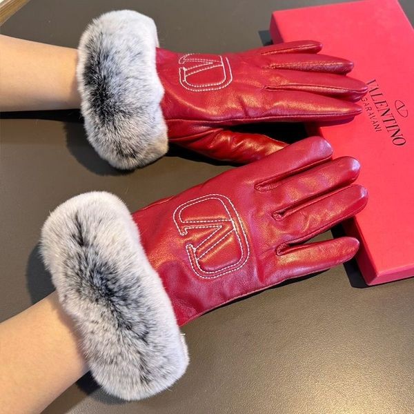 Valentino Vlogo Reliéfní Rukavice Ženy Ovčí Kůže S Králičí Kožešiny Červená