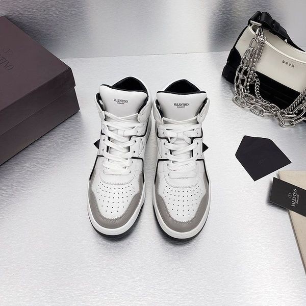 Valentino En Stud Mid-Top Sneakers Unisex Kalveskind Hvid/Sort