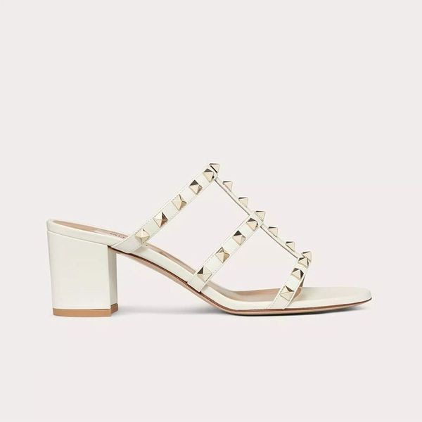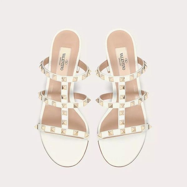 Valentino Rockstud Tyk-Heeled Dias Kvinder Kalveskind Hvid-Hvid Valentino Rockstud-Slides.-Kalveskind. -Stropper dekoreret med nitter.-Hæl Højde: 6 cm, 9 cm.-Kvinder Størrelse: EU-34, EU-35, EU-36, EU-37, EU-38, EU-39, EU 40, EU ' s 41.