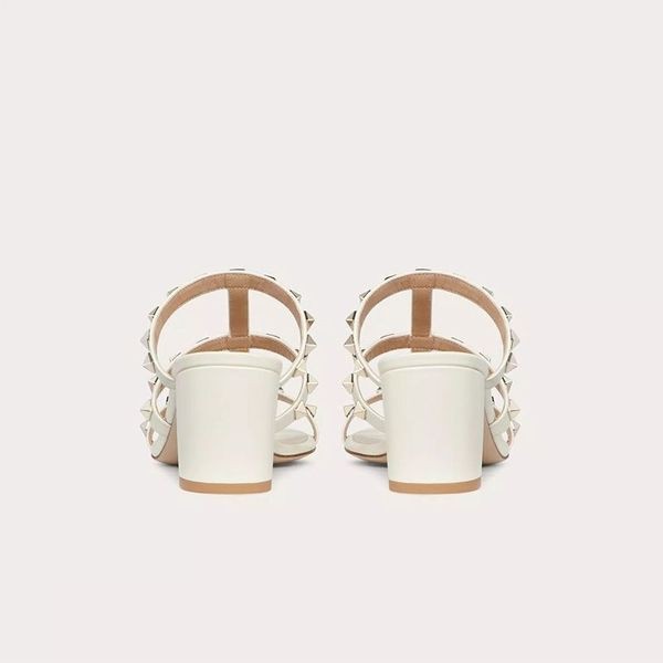 Valentino Rockstud Tyk-Heeled Dias Kvinder Hvid Kalveskind