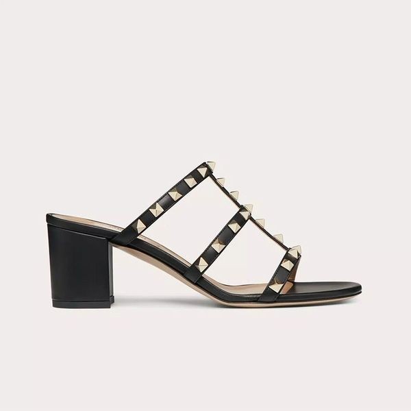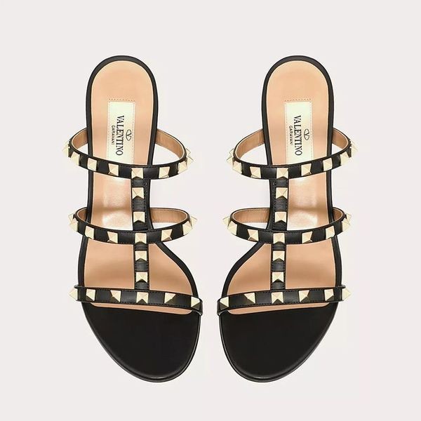 Valentino Rockstud Tyk-Heeled Dias Kvinder Kalveskind Sort/Guld, Sort/Guld Valentino Rockstud-Slides.-Kalveskind. -Stropper dekoreret med nitter.-Hæl Højde: 6 cm, 9 cm.-Kvinder Størrelse: EU-34, EU-35, EU-36, EU-37, EU-38, EU-39, EU 40, EU ' s 41.