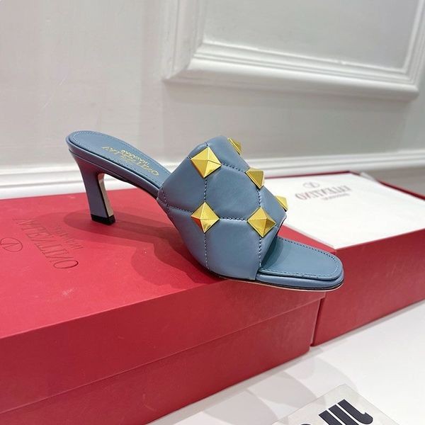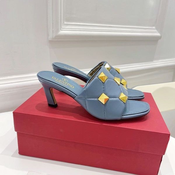 Valentino Romerske Stud Slagside Dias Kvinder Nappa Læder Himmel Blå-Blå Himmel Valentino Romerske Stud Sider.-Nappalæder quiltet udsmykket med maxi nitter.-Maxi nitter med en antikke messing finish.-Hæl Højde: 6,5 cm.-Kvinder Størrelse: EU-35, EU-36, EU-37, EU-38, EU-39, EU 40, EU ' s 41.