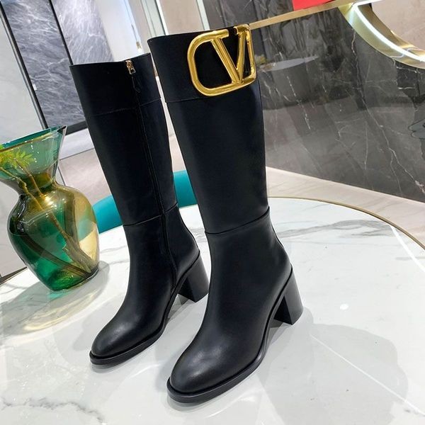 Valentino Supervee Knæ-Ankel Støvler Kvinder Sort Kalveskind