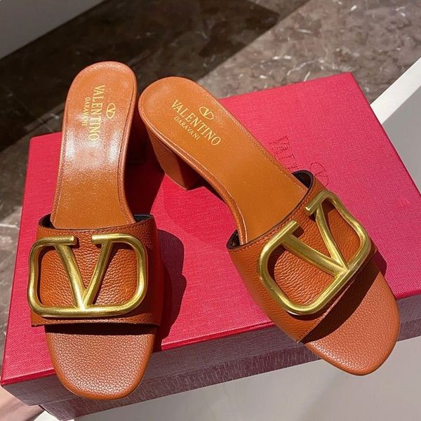 Valentino VLogo Signatur Tyk-Heeled Dias Kvinder Kornet Kalveskind Brun-Brun Valentino VLogo Signatur Sider.-Kornet Kalveskind.-Vintage-effekt messing VLogo Signatur detaljer.-Læder sål med Valentino Garavani debossed logo.-Hæl Højde: 6,5 cm.-Kvinder Størrelse: EU-35, EU-36, EU-37, EU-38, EU-39, EU 40, EU-41, EU ' s 42.
