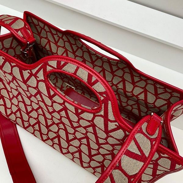 Valentino Großen La Troisieme Shopping Bag In Toile Iconographe Stoff Rot