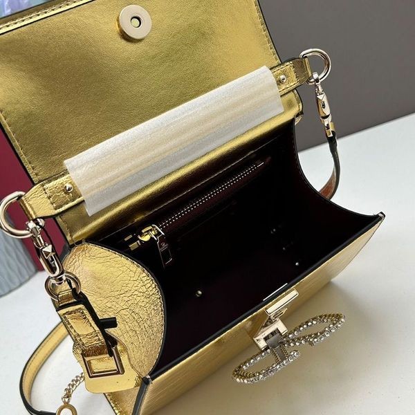 Valentino Kleine Vsling Handtasche Mit Krokodil-Leder und Edelstein-Stickerei-Kalbsleder In Gold