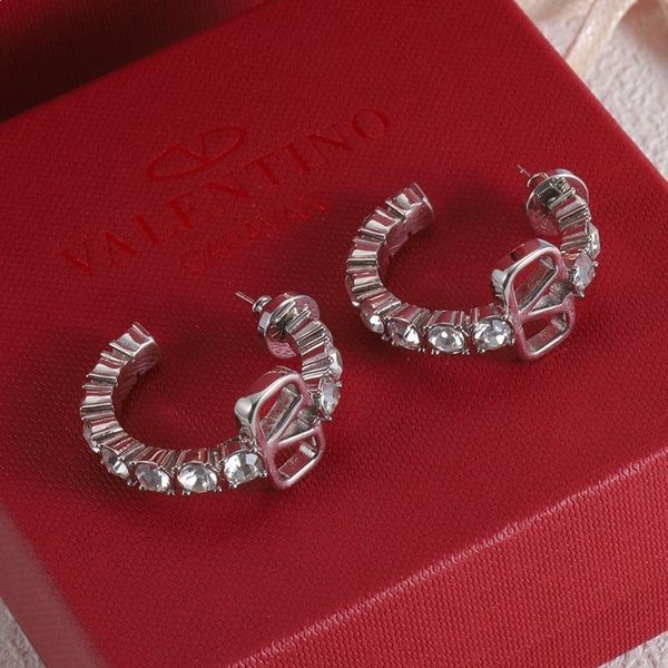 Valentino Mini-VLogo-Signatur-Ohrringe Aus Metall Mit Swarovski-Kristallen Silber-Silber VLogo Valentino-Signatur-Ohrringe.-Metall-VLogo.-Swarovski-Kristallen.-Pin-Befestigung für Ohrlöcher.