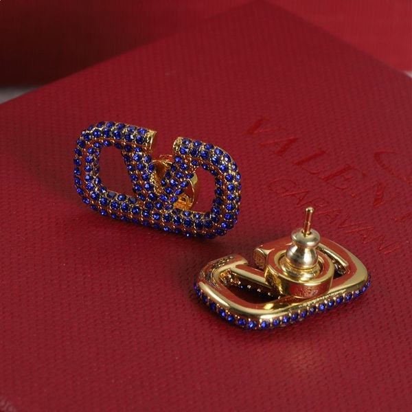 Valentino Mini-VLogo Unterschrift Stud Ohrringe Aus Metall Mit Kristallen Gold/Blau