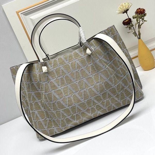 Valentino Mittelgroße VLogo Signatur Shopping-Bag Mit Nieten In Toile Iconographe Stoff Grau