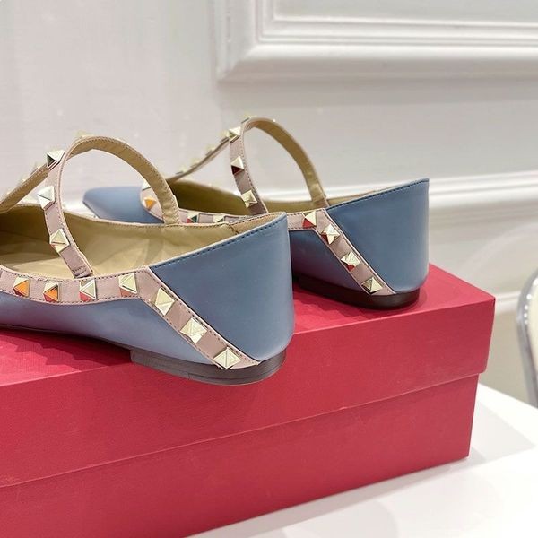 Valentino Rockstud Ballerina Flats Mit T-Strap Frauen Patent Leder Blau