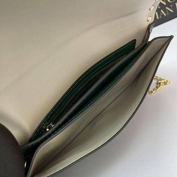 Valentino Rockstud Kleine Armband Kupplung Mit Kette, Kalbsleder In Grün