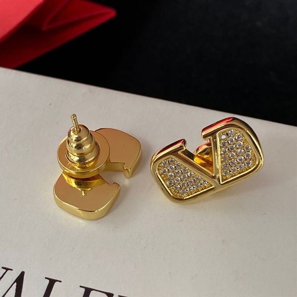 Valentino, VLogo Unterschrift Stud Ohrringe Aus Metall Mit Kristallen-Gold Valentino, VLogo Signatur-Ohrringe.-Metall.-VLogo Mit Kristallen.-Pin-Befestigung für Ohrlöcher.