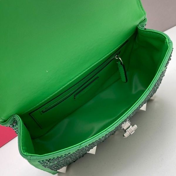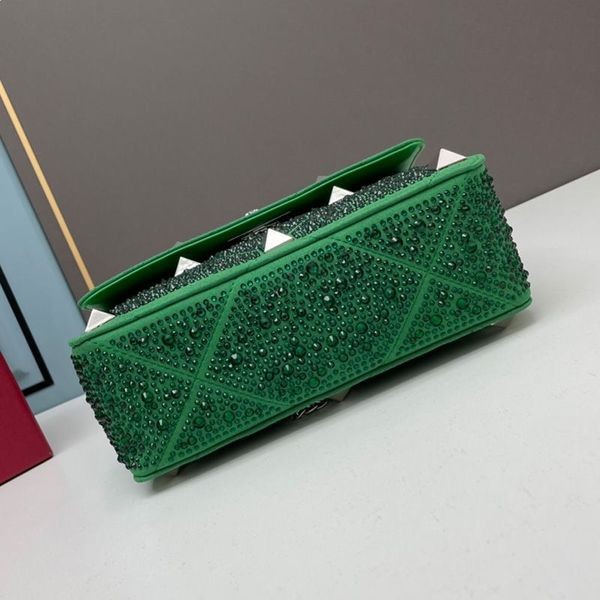Valentino Μέσο Ρωμαϊκή Stud Τσάντα Ώμου Με Αλυσίδα και λαμπερά Κρύσταλλα Σε Πράσινο Σουέτ