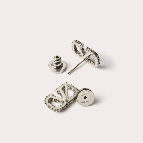 Valentino Μίνι VLogo Υπογραφή Stud Σκουλαρίκια Σε Μεταλλικό Με Κρύσταλλα Ασημί