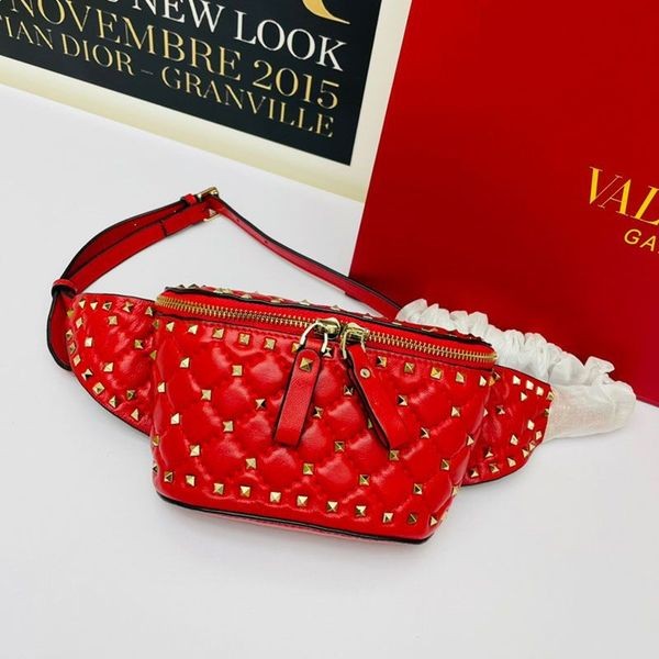 Valentino Μικρό Rockstud Ακίδα Τσάντα Ζωνών Στην Κόκκινη Προβιά