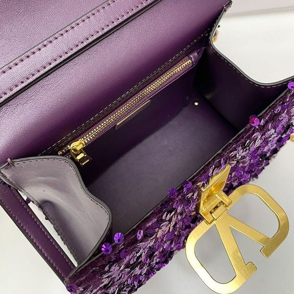 Valentino Μικρό Vsling Τσάντα Με 3D Κεντήματα Στο δέρμα μοσχαριού Μωβ
