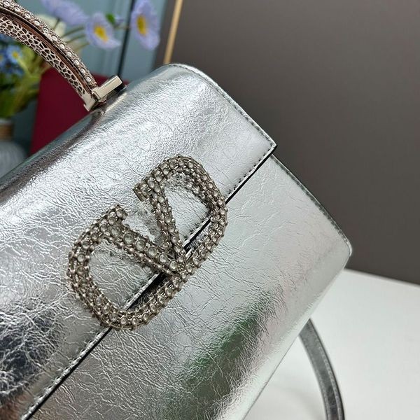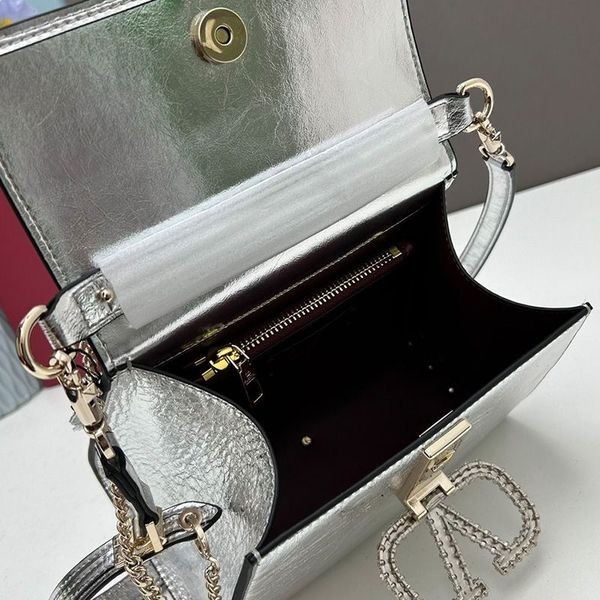 Valentino Μικρό Vsling Τσάντα Με Δέρμα Κροκόδειλου και Κόσμημα Κέντημα Στο δέρμα μοσχαριού Ασήμι