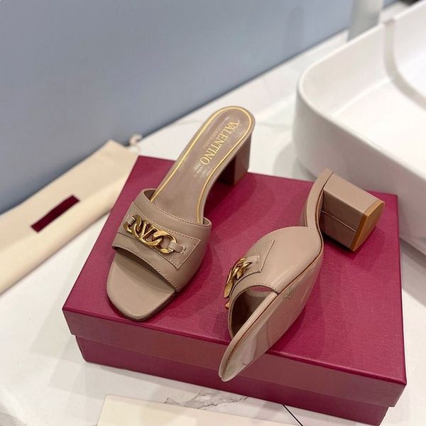 Valentino VLogo Αλυσίδα Παχιά Τακούνια Διαφάνειες Γυναίκες Taupe Δέρμα Μοσχαριού