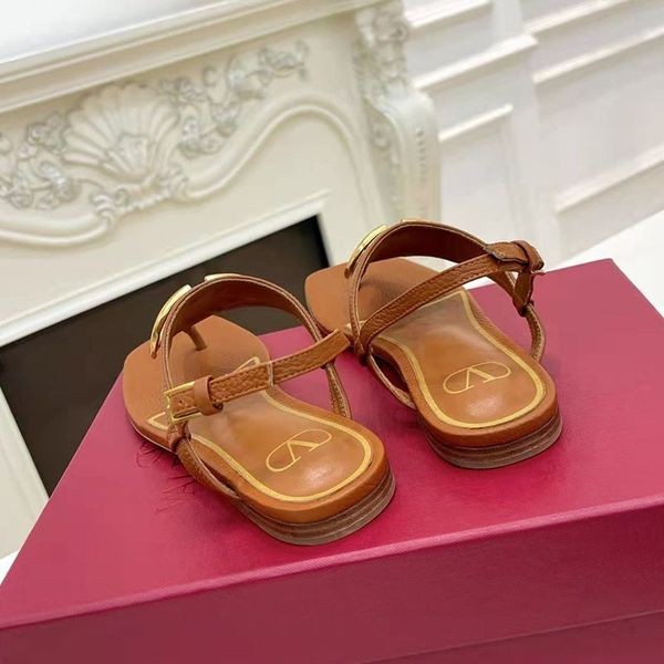 Valentino Vlogo Υπογραφή Επίπεδη Σανδάλια Γυναικών Δερμάτινο Καφέ