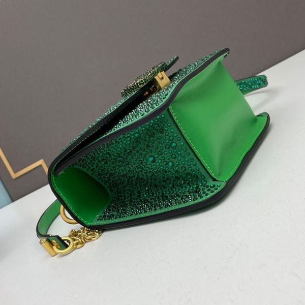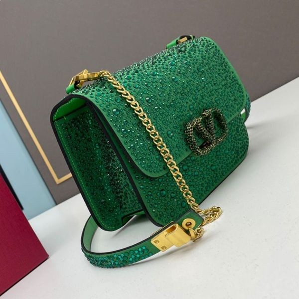 Valentino Small Vsling Crossbody Bag with Sparkling Crystals In Suede Green-Green Valentino Vsling Crossbody Bag.-Suede.-Hardware with tone-on-tone finish.-Magnetic closure.-Interior: one flat pocket.-Leather shoulder strap with adjustable chain.-Size: 18 * 16 * 8.5 cm.