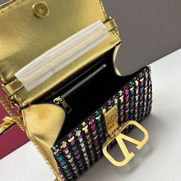 Valentino Small Vsling Handbag In Stripe Woven Calfskin Multicolor-Multicolor Valentino Vsling Handbag.-Stripe Woven and Calfskin.-Antique-brass-finish metal hardware.-Top handle, shoulder strap with adjustable chain.-Magnetic closure and leather logo.-Interior: zipper pocket.-Size: W22 * H16 * D9 cm.