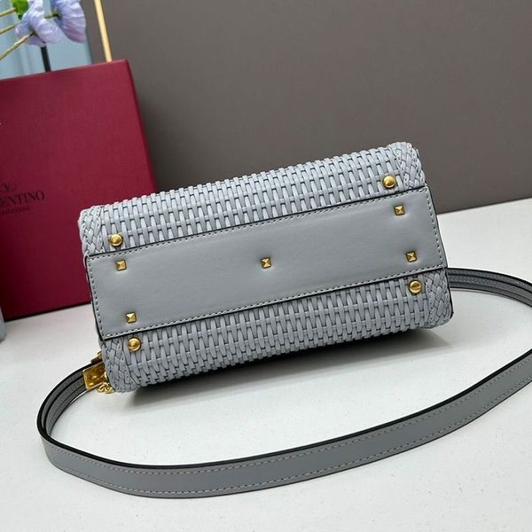 Valentino Small Vsling Handbag In Woven Calfskin Sky Blue-Sky Blue Valentino Vsling Handbag.-Woven Calfskin.-Antique-brass-finish metal hardware.-Top handle, shoulder strap with adjustable chain.-Magnetic closure with leather-coveRedlogo.-Interior: zipper pocket.-Size: W22 * H16 * D9 cm.