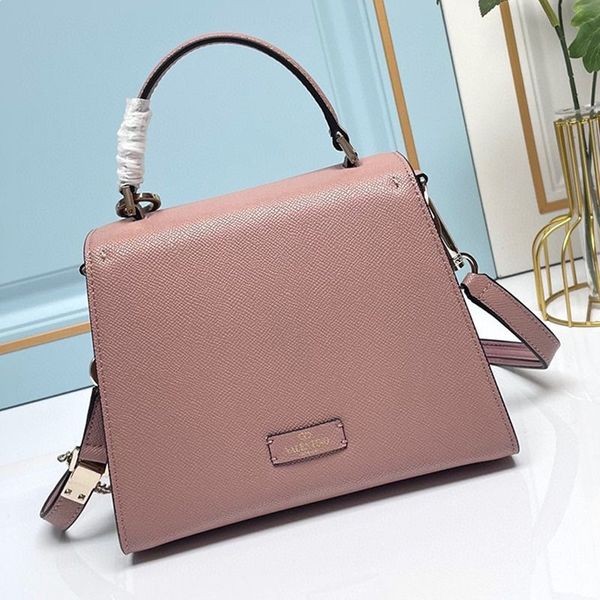 Valentino Small Vsling Handbag with Jewel Embroidery In Grained Calfskin Pink-Pink Valentino Vsling Handbag.-Grained Calfskin with Jewel Embroidery.-Magnetic closure.-Leather shoulder strap with adjustable chain.-Protective feet.-Interior: one zipper pocket.-Size: W22 * H17 * D9 cm.