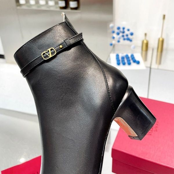 Valentino Tan-Go Ankle Boots 45mm Women Calfskin Black-Black Valentino Tan-Go Boots.-Calfskin.-Ankle strap with customized VLogo Signature buckle.-Inner side zip.-Leather-covered block heel.-Heel Height: 45 mm.-Women Size: EU 35, EU 36, EU 37, EU 38, EU 39, EU 40, EU 41.