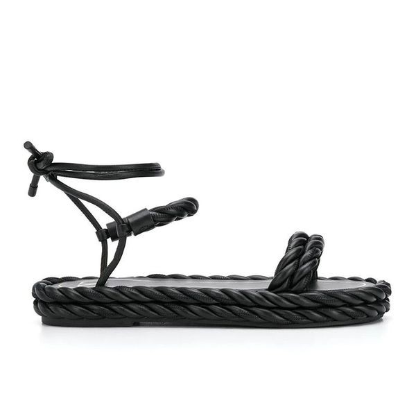 Valentino The Rope Flat Sandals Women Weave Calfskin Black-Black Valentino The Rope Flat Sandals.-Weave Calfskin.-Twisted leather straps at vamp and welt.-Ankle tie fastening.-VLogo Signature.-Women Size: EU 35, EU 36, EU 37, EU 38, EU 39, EU 40.
