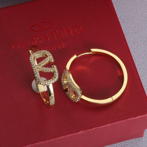 Valentino Vlogo Signature Pin Earrings In Metal With Crystals Gold-Gold Valentino VLogo Signature Earrings.-Metal.-VLogo with Crystals.-Pin fastening for pierced ears.-Length: 4 cm.