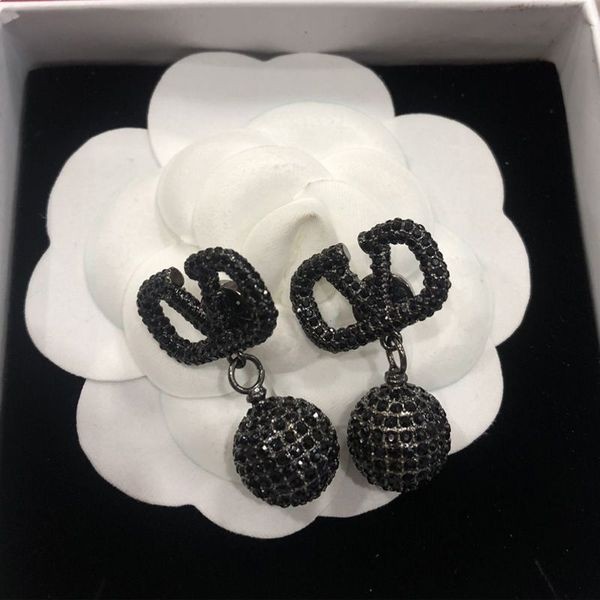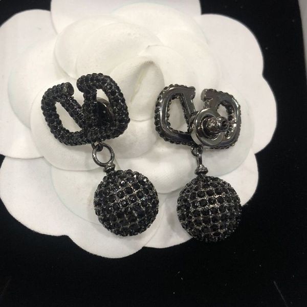 Valentino Mini VLogo Firma Colgante Pendientes En Metal Con Bolas De Cristal Negro