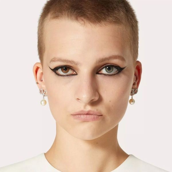 Valentino Mini VLogo Firma Colgante Pendientes En Metal Con Cristales y Perlas de Plata