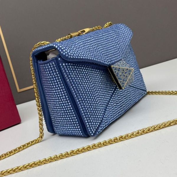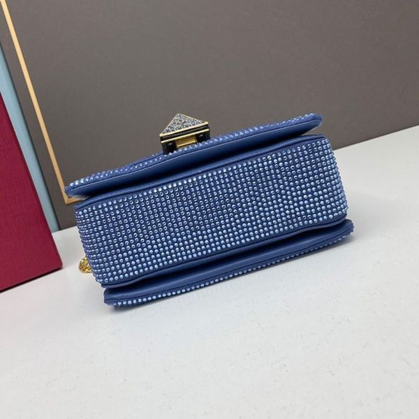 Valentino Pequeño Perno de Crossbody del Bolso Con Cadena y brillantes Cristales En ante Azul marino