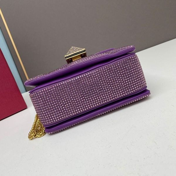 Valentino Pequeño Perno de Crossbody del Bolso Con Cadena y brillantes Cristales En Gamuza de color Púrpura