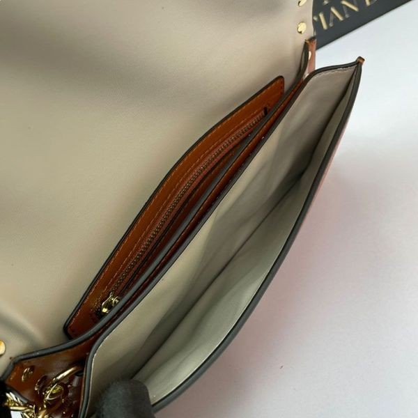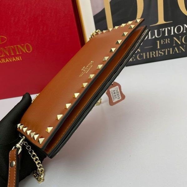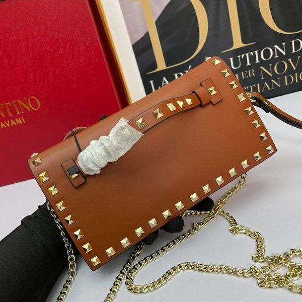 Valentino Pequeño Rockstud Brazalete Clutch Con Cadena De Piel De Becerro Marrón
