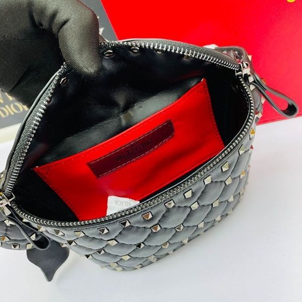 Pequeño Valentino Rockstud De La Espiga De La Correa De La Bolsa En Piel De Cordero Negro/Plata, Negro/Plata Valentino Rockstud De La Espiga De La Correa De La Bolsa.-Acolchado de piel de cordero.-Rombo patrón reforzada por la costura.-Platino-acabado de postes de madera y hardware.-Correa de cintura ajustable.-Postal de fijación.-Interior bolsillo plano.-Tamaño: W19 * H10.7 * D5 cm.