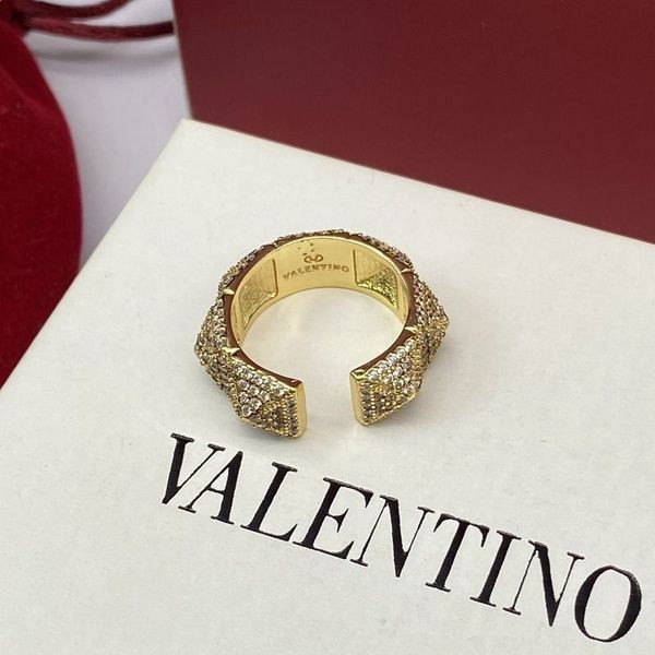 Valentino Rockstud Apertura De Anillo De Metal Con Cristales De Swarovski Oro